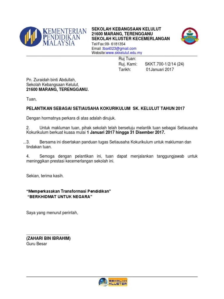 Surat perlantikan ini tidak kiralah untuk jawatan apa sekalipun seperti . Contoh surat rasmi lantikan jawatan kabar blok.